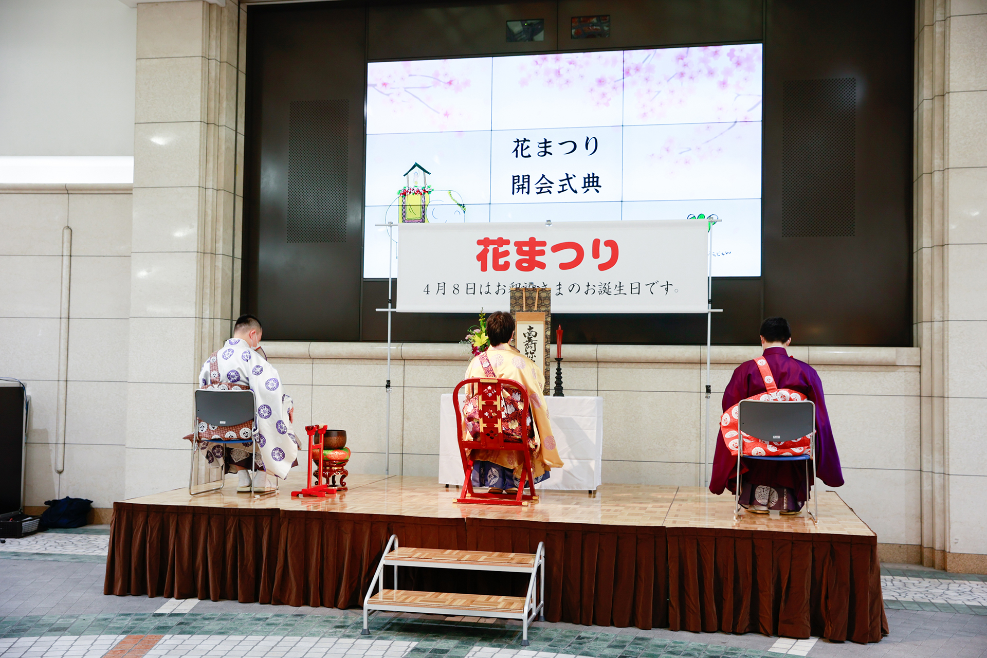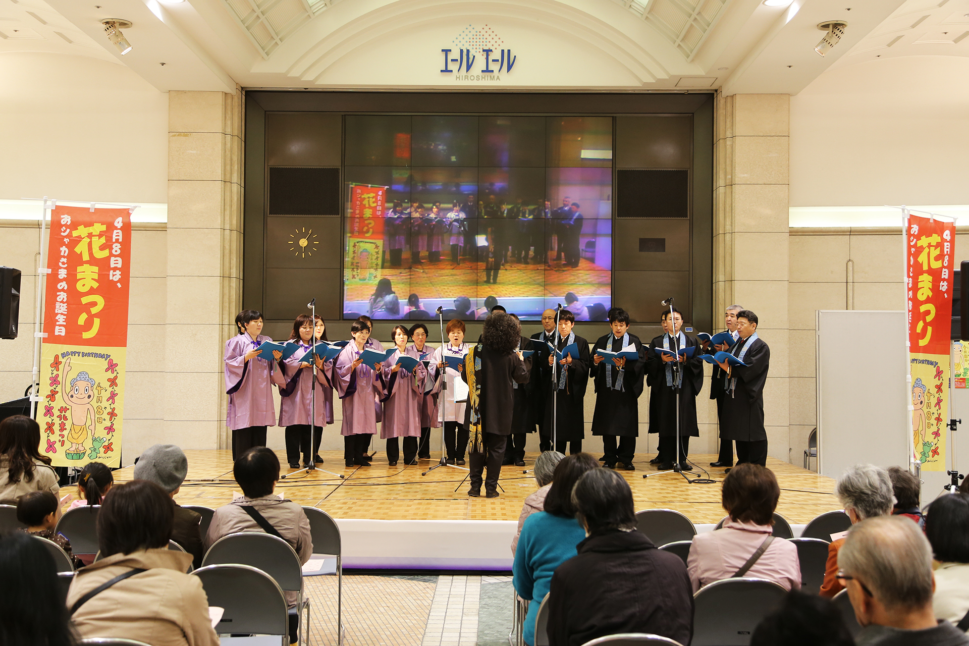 広真会では毎年4月8日に広島駅南口地下広場にて灌仏行事を開催しています。