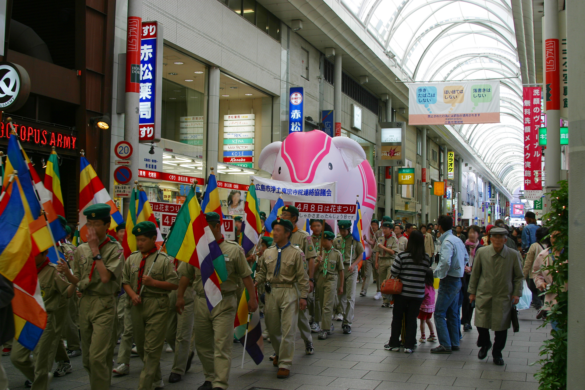 パレードは例年、広島銀行本店東側の「勝順寺」を出発し、本通⇒金座街⇒中央通り⇒金座街⇒本通⇒勝順寺の順路で回ります。