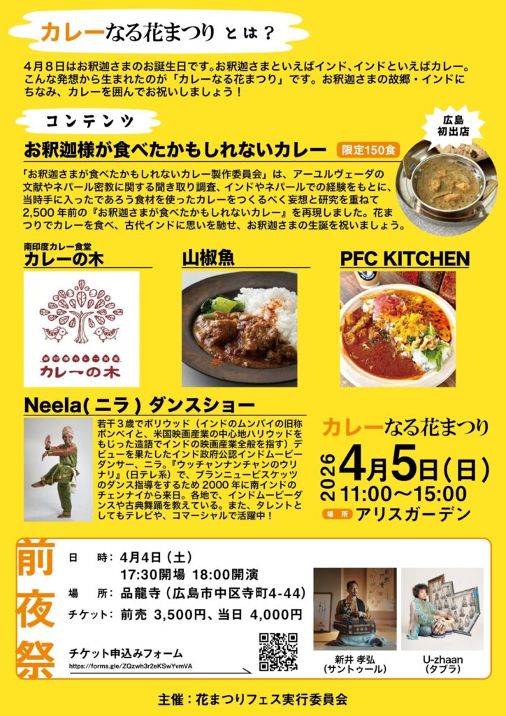 広島のカレー店が集まり、当日は“食”を入口に花まつりを楽しめる1日をつくります。